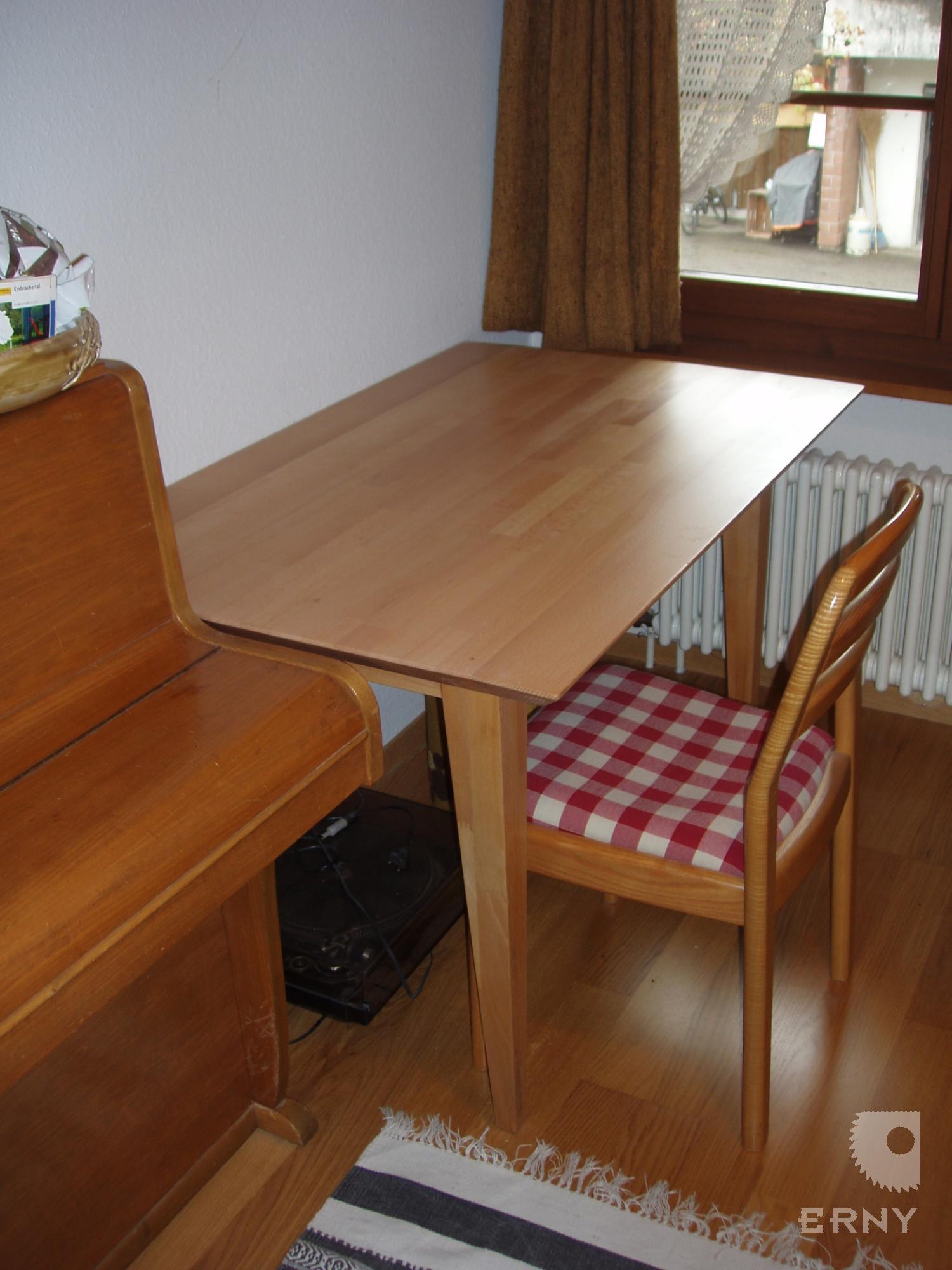 Und wenn der Lieblingstisch abgenutzt, und die Oberfläche nicht mehr schön ist, frischen wir den Tisch auf, schleifen die Oberfläche ab und ölen oder lackieren neu.
